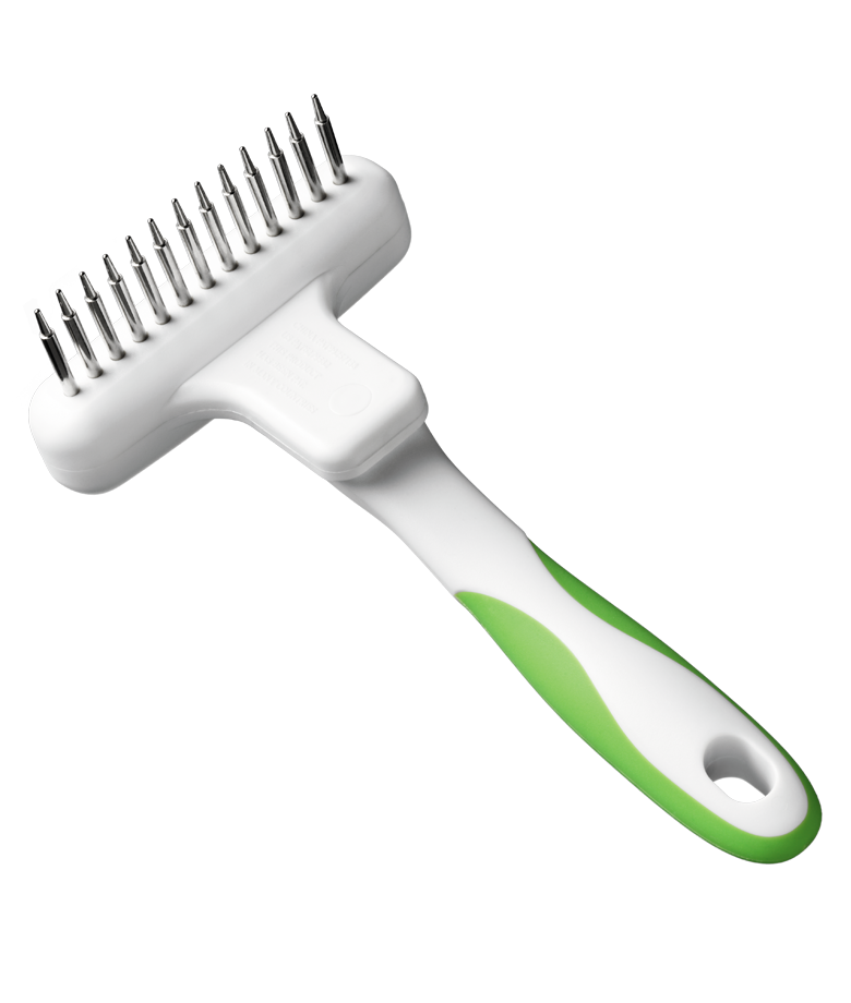 Bu zamansız bakım klasiği, müşterilerinizin kıvrımlarına uyum sağlamak için esner. Her ekstra uzun diş, evcil hayvanların benzersiz vücut hatlarına nazikçe uyan yaylı bir pim içerir. Gelişmiş 360° dönme hareketiyle bu tarak saça takılmaz veya çekmez; sadece hazırlayın, yenileyin ve yolunuza devam edin. Tüm türler için ideal olan tırmık kaba, ölü tüyleri yumuşak bir verimlilikle temizlerken son katları pürüzsüz, parlak ve sağlam tutar.